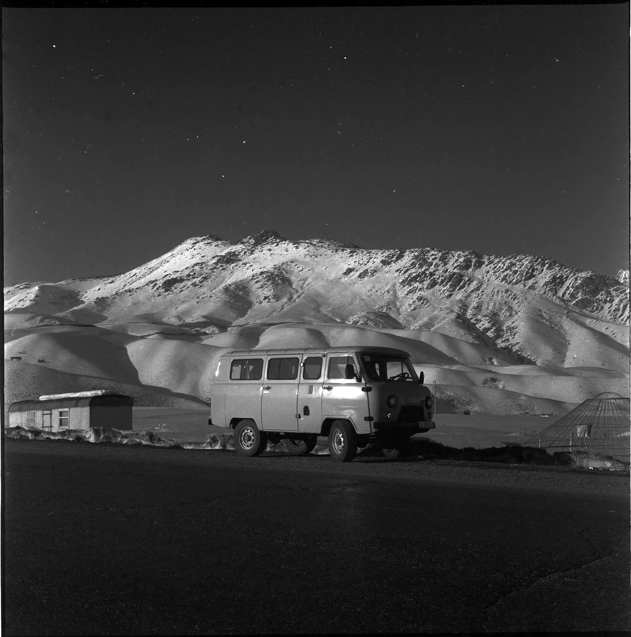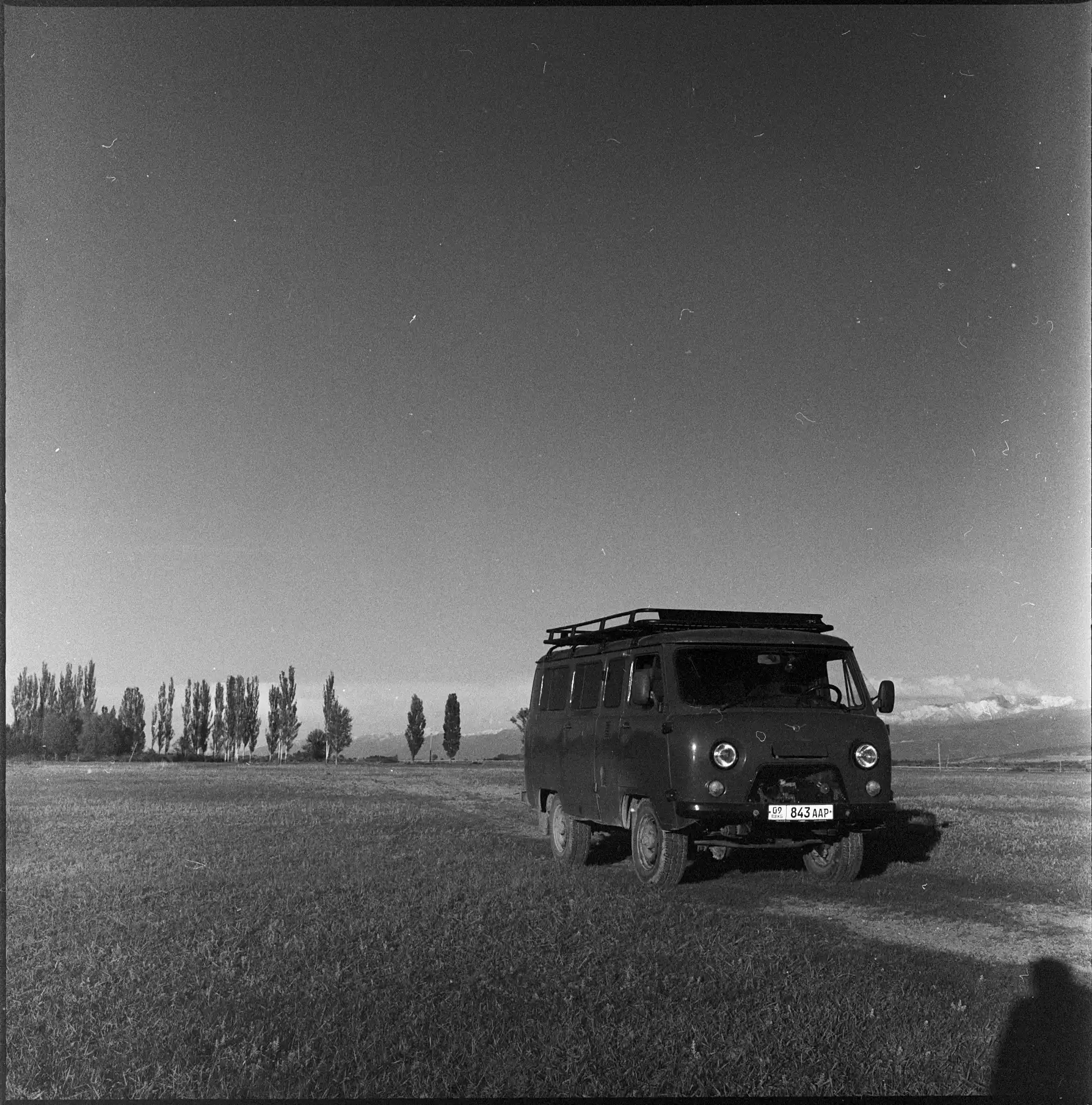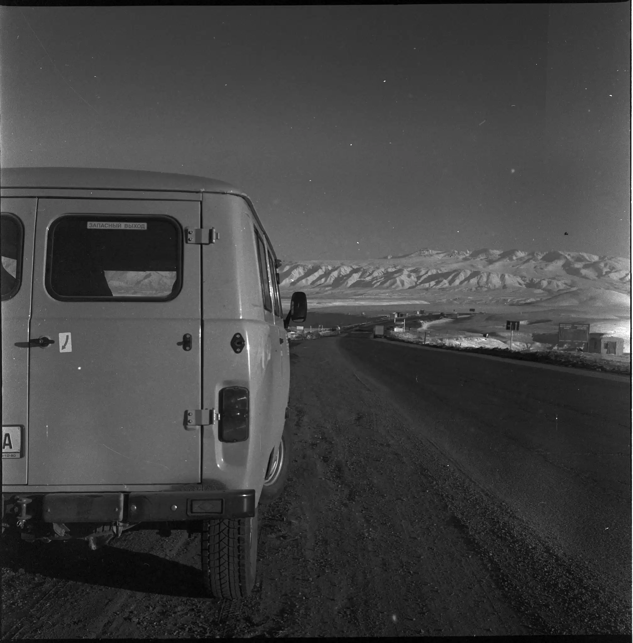 Driving without the headlights on outside of Bishkek |