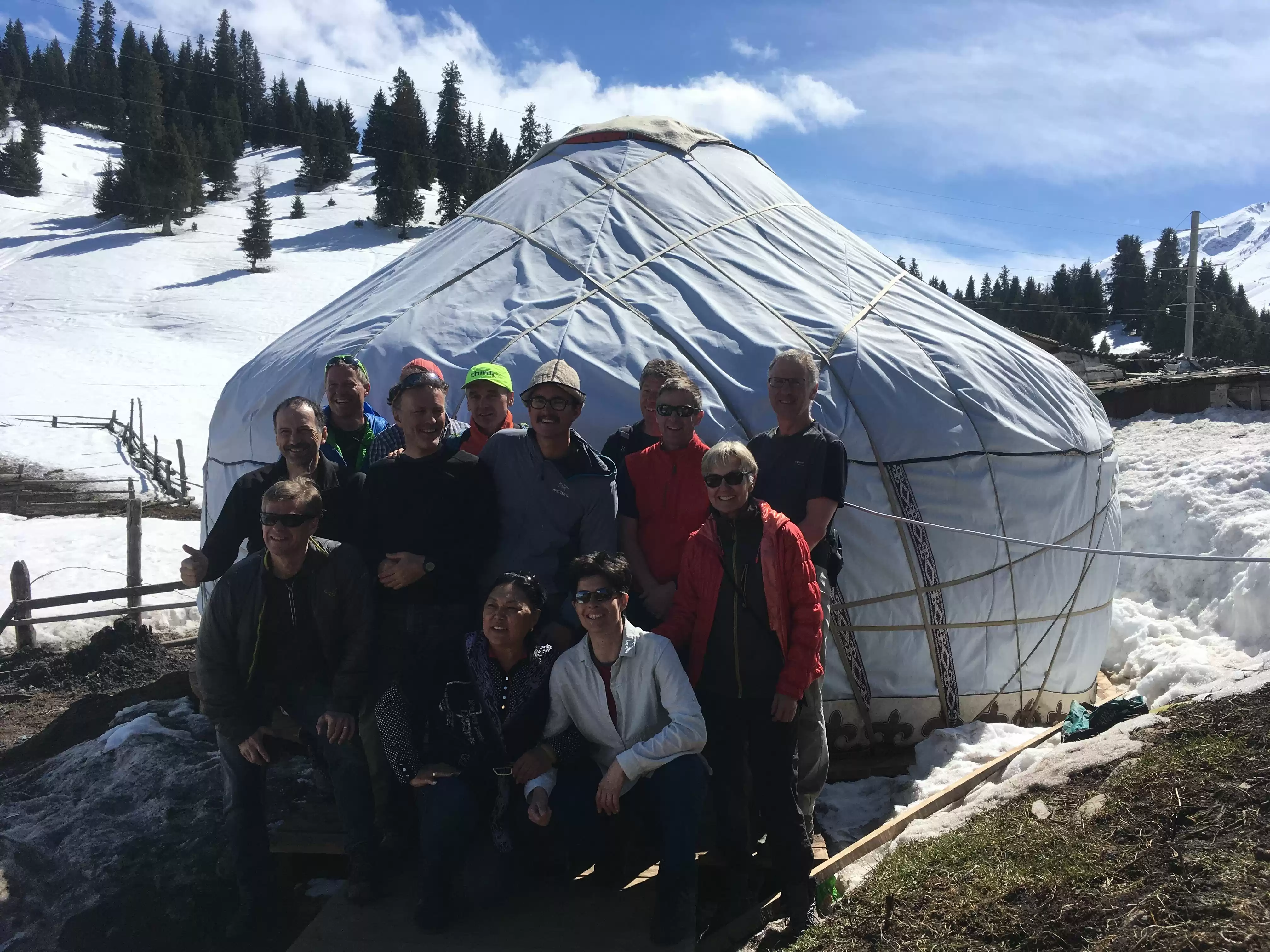 - Jyrgalan ski in and ski our yurt camp. Itâs a great yurt camp to ski in and ski out of and enjoy the supper hot banya and jump in the river nearby to cool off real fast. The yurt camp is one of the best in Central Asia and itâs in a small village of Jyrgalan. The price is 75-95 dollars per night per person with 3 meals per day.