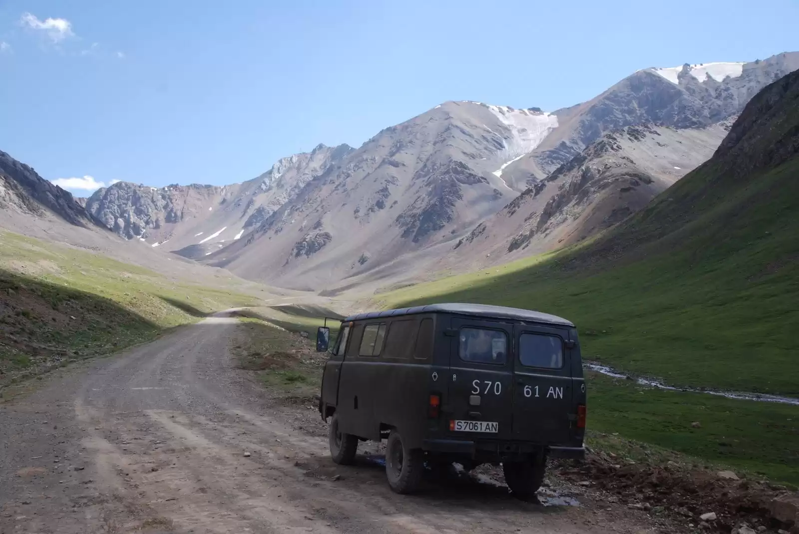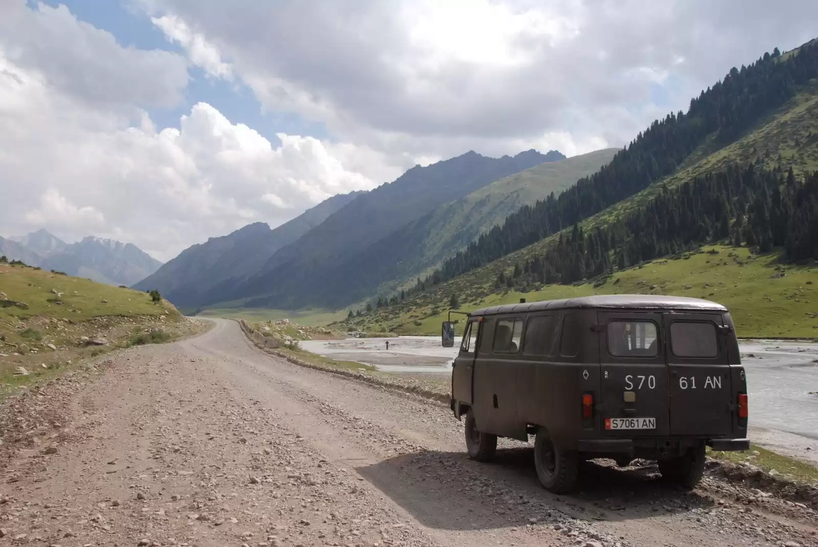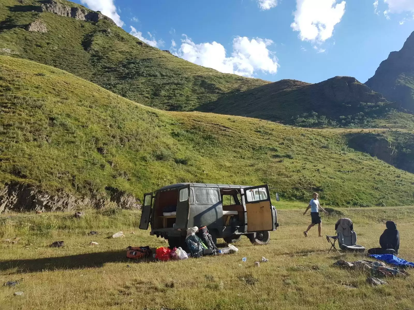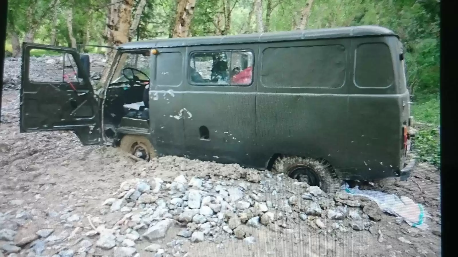 The first guest that rented the van were really crazy…. They took the old-timer over the Too Ashuu mountain pass at 3,180 m which is quite an epic pass to cross in Kyrgyzstan with such an old van. They were having a nice time beating up the van until they had the brilliant idea to drive the van into a fresh landslide and get the van stuck 100 km off the main road in the middle of nowhere. They were really special people, to say the least.