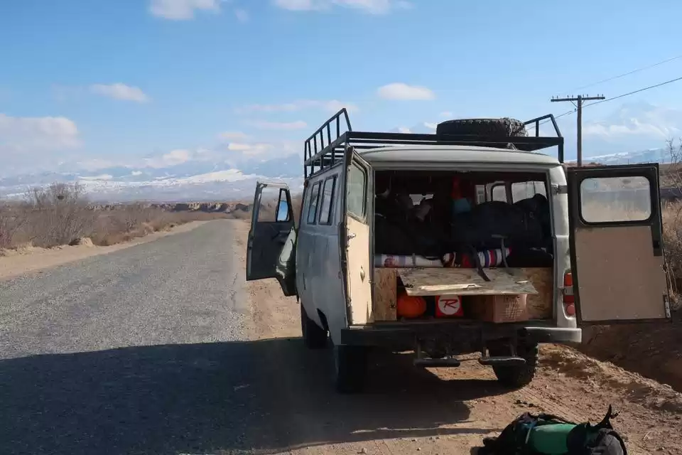 Renting out Ole’ Burly to intrepid travelers was no small feat. The van traversed the diverse terrains of Central Asia with a spirit that was, albeit reluctant, undeniably adventurous. Breakdowns became a part of the journey, each one teaching me a bit more Russian and introducing me to the indispensable crew at the UAZ Center in Bishkek. My friendship with Vlad, the owner, became a testament to the unexpected bonds formed on the road.