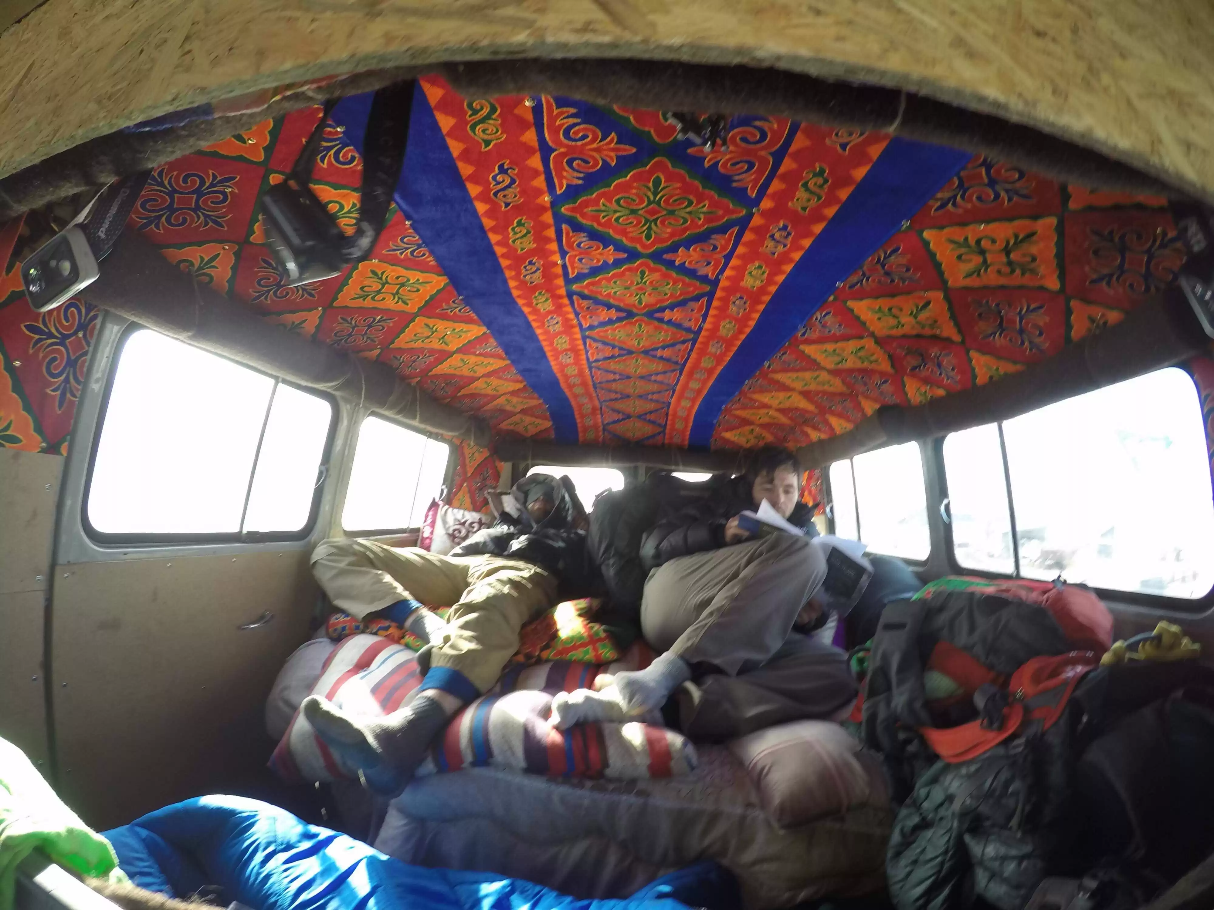 After a fresh paint job and several upgrades, Ole’ Burly was ready for more adventures. The van welcomed adventurers from around the world, including a memorable group linked to Rolls Royce and BMW, seeking the thrill of Kyrgyzstan’s landscapes. Their journey, immortalized in a film, showcased the unparalleled experiences the van facilitated.